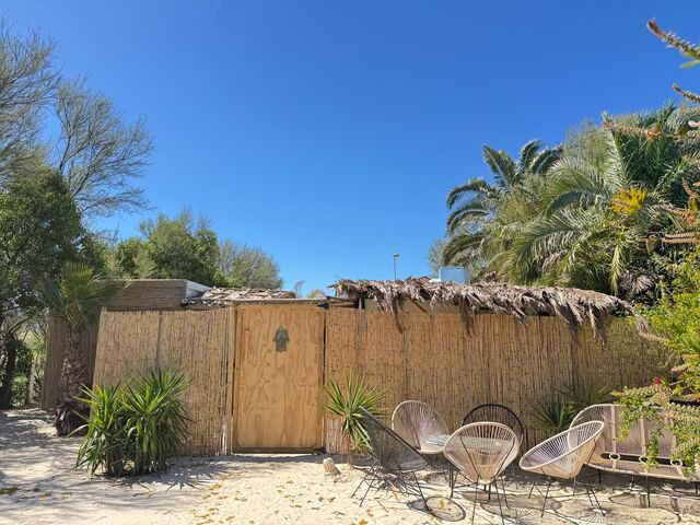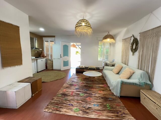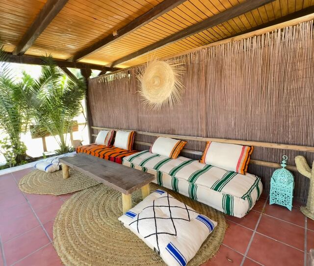 Son dos casitas con alma de 2 y 1 dormitorio , separadas solo por una pared de cañas. Puedes alquilarlas juntas si las dos estuvieran disponibles o por separado, pero siempre con la misma esencia: porches amplios para relajarte, una decoración boho chic que invita a desconectar y un ambiente de playa que te hará sentir en algún lugar lejano y exótico.